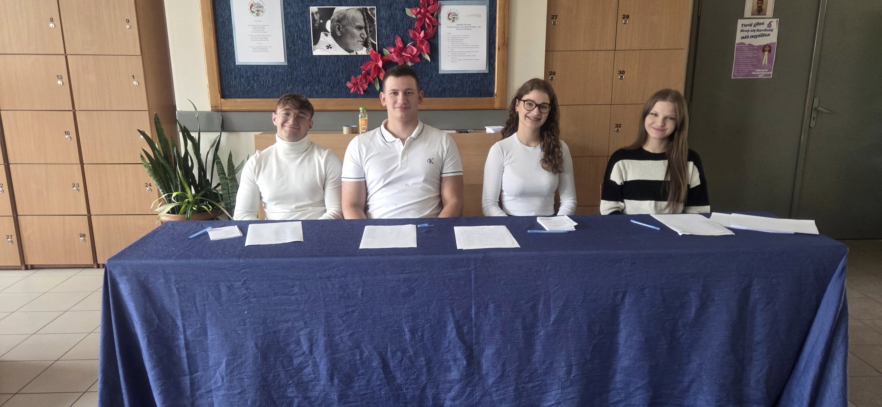 Kolejny rok - kolejne wyzwania. Przed takimi staje nowo wybrana Rada Samorządu Uczniowskiego: Marcelina Bogucka, Kajetan Tatkowski, Juliusz Szuchmilski-Biskupski, Maria Majczuk. Członkom komisji wyborczej dziękujemy za dzisiejszą pracę, a Cysi, Kajowi, Julkowi i Marii gratulujemy i życzymy owocnej kadencji