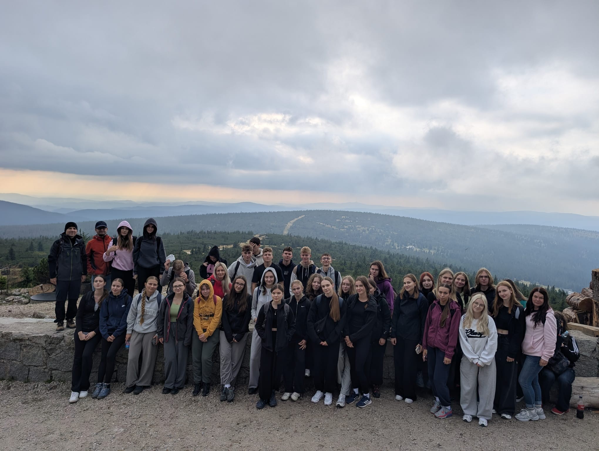 Pierwszego dnia grupa wycieczkowa podziwiała Wrocław, zaprzyjaźniła się ze zwierzakami we wrocławskim ZOO. Atmosfera była fantastyczna – wszędzie było słychać rozmowy, śmiech i wspólne żarty. We wtorek odkrywali tajemnice Zamku Czocha i udali się na górski szlak podziwiając po drodze piękno wodospadów Kamieńczyka i Szklarki. Wejście na Szrenicę ze wsparciem przyjaciół okazało się doskonałym sposobem na pokonanie własnych słabości. Nagrodą za trudy wspinaczki był malowniczy widok na pasmo Karkonoszy zatopionych w baśniowej mgle zachodzącego słońca. Z kolei legendarne naleśniki serwowane w schronisku dały wszystkim siłę na drogę powrotną w wyśmienitych nastrojach. Kolejnego dnia grupa pozdrawiała naszą szkołę z najpiękniejszego miasta Saksonii - Drezna. Podczas spaceru po urokliwej starówce poznali historię i ciekawostki o tym niezwykłym miejscu. Nie można również odmówić sobie przyjemności zwiedzania słynnego barokowego kompleksu pałacowego Zwinger. Znajduje się tam cenna kolekcja porcelany oraz Galeria Obrazów Starych Mistrzów, a w niej dzieła sztuki znane na całym świecie jak np. "Madonna Sykstyńska" Rafaela, "Leda z łabędziem" Rubensa czy "Grosz czynszowy" Tycjana.To była nie tylko lekcja historii i sztuki, ale też wspaniała okazja do wspólnego spędzenia czasu i integracji. W kolejnym dniu karkonoskiej przygody duch gór Liczyrzepa sprawdził naszą wytrzymałość podczas wspinaczki na Śnieżkę. Był to symboliczny moment dla maturzystów, bo tak jak wejście na szczyt wymaga odpowiedniego przygotowania, tak i egzamin dojrzałości jest zwieńczeniem wielu lat nauki. Nie było łatwo, ale uczniowie lubią wyzwania. Nasza maturalna ekipa zawitała w ostatnim dniu wycieczki do Zamku Książ, w którym poznali losy Daisy – księżnej, o której można by nakręcić niejeden serial, każdy złapał trochę szczęścia, dotykając słynnej skałki szczęścia, a na deser – tarasy z widokami, które zapierają dech w piersiach! Wszyscy wrócili do Brodnicy z głowami pełnymi wrażeń i odrobiną szczęścia na maturę