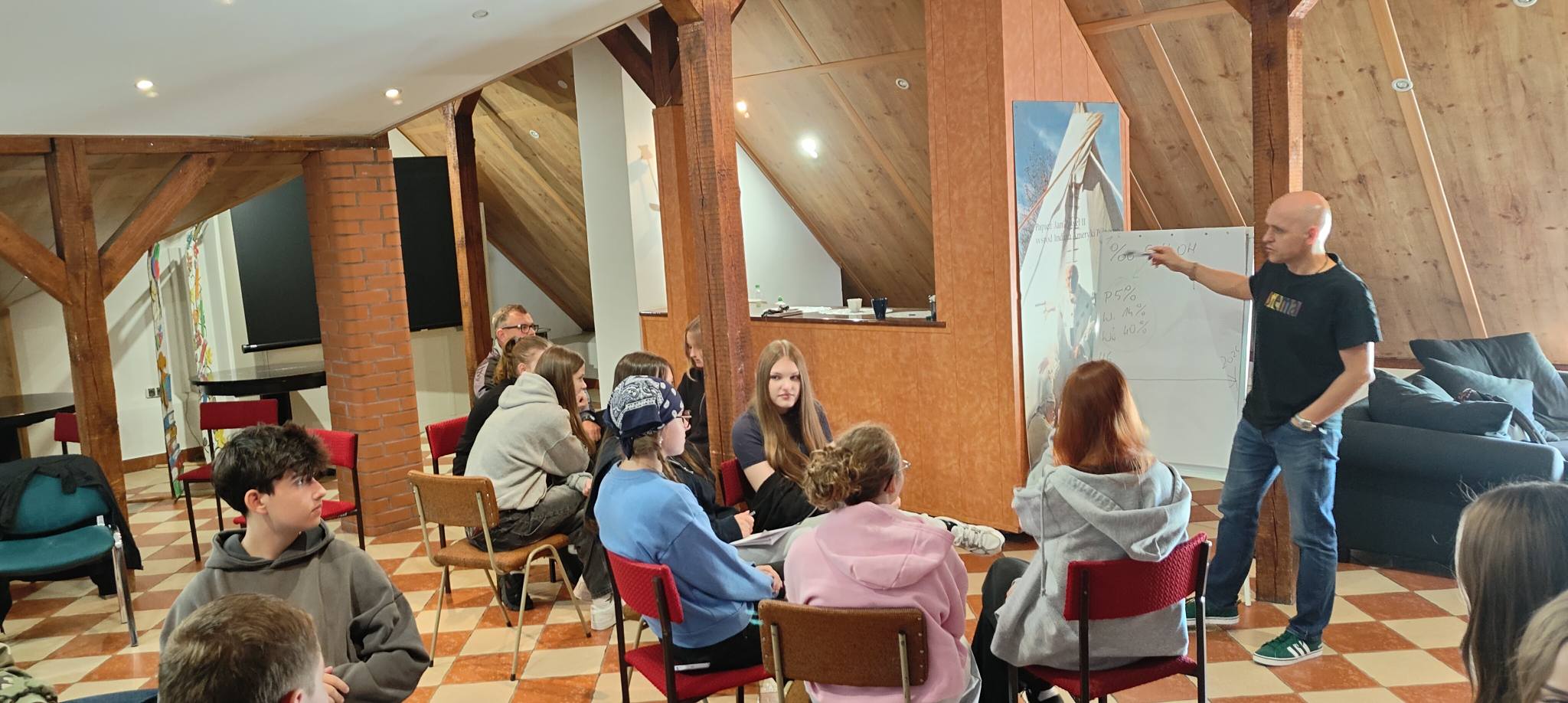 "Debacie" - której celem jest wzmocnienie postaw pro-abstynenckich u nastolatków stojących przed progiem inicjacji alkoholowej. Warsztaty poprowadził Piotr Szaszkiewicz - specjalista w zakresie prawa i profilaktyki uzależnień.